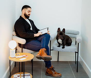 Also, the cutest Frenchie in the world, Mr Otis, comes to the clinic. You can choose to have him in the room with you, if it provides you comfort.